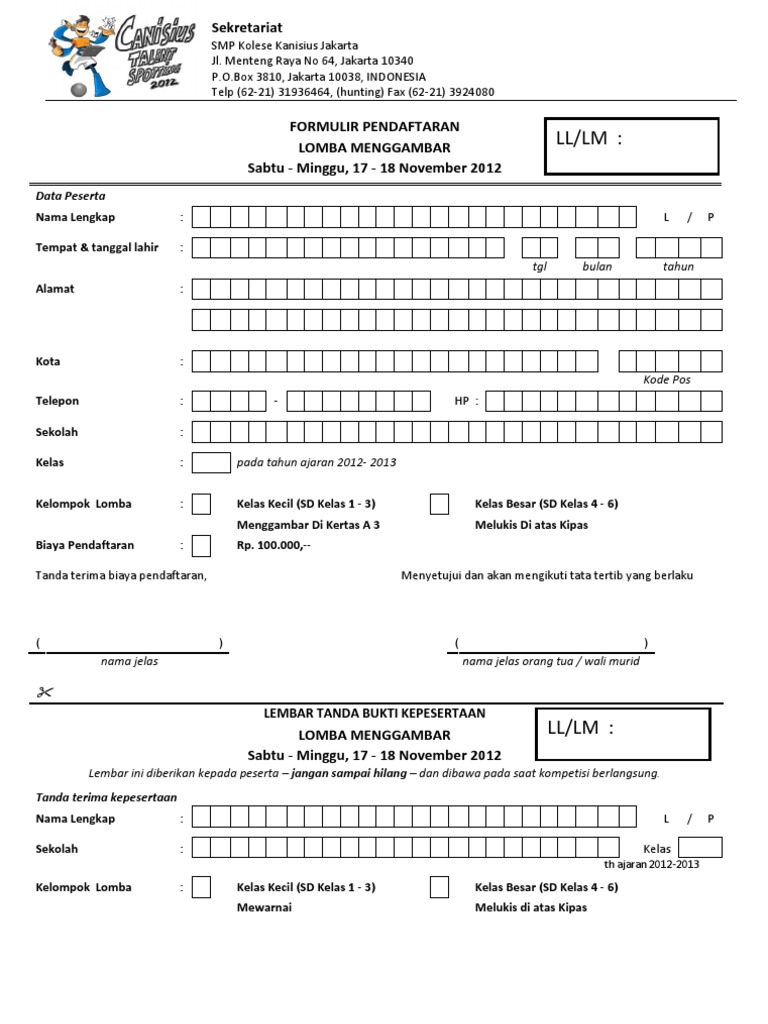 Formulir Pendaftaran Lomba Menggambar