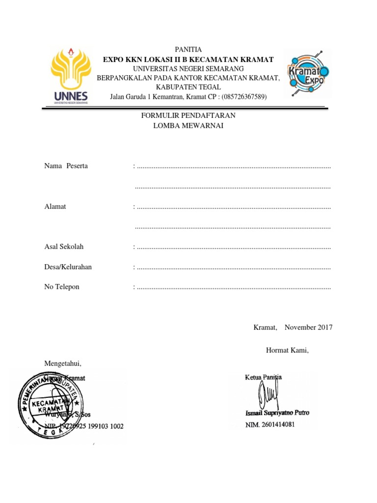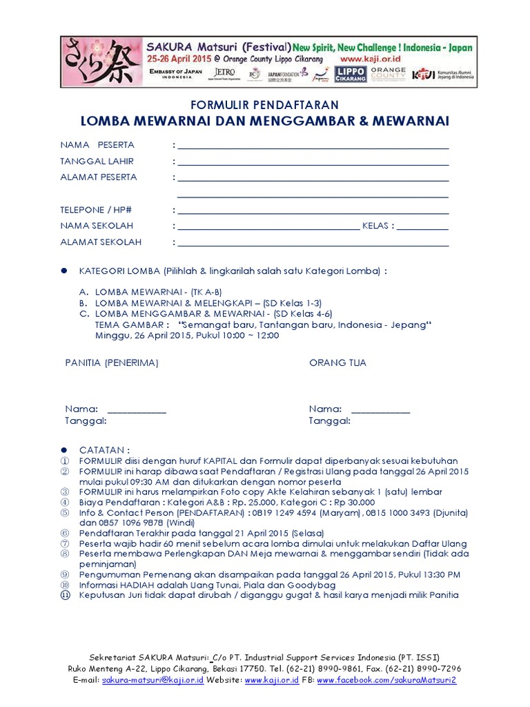 Peserta diwajibkan untuk membawa perlengkapan lomba sendiri berupa alas. Contoh Formulir Pendaftaran Lomba Mewarnai Contoh Contoh U. Penutupan pendaftaran 2 november 2015.