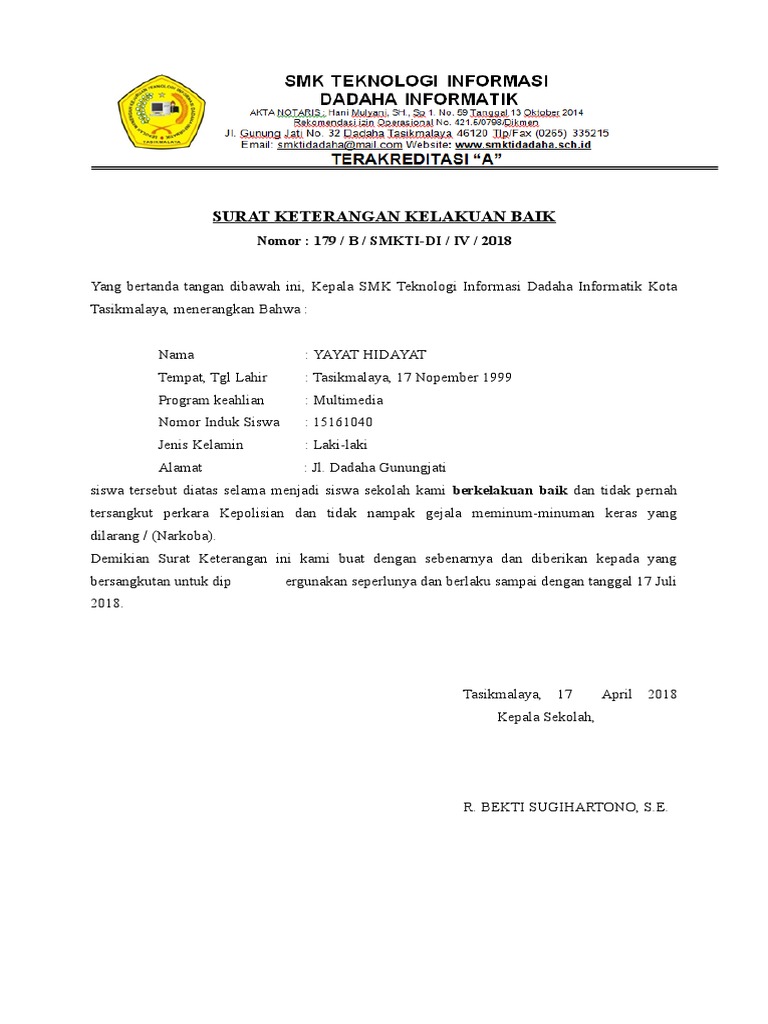 Contoh Surat Kelakuan Baik Dari Sekolah Smk Dapatkan Contoh